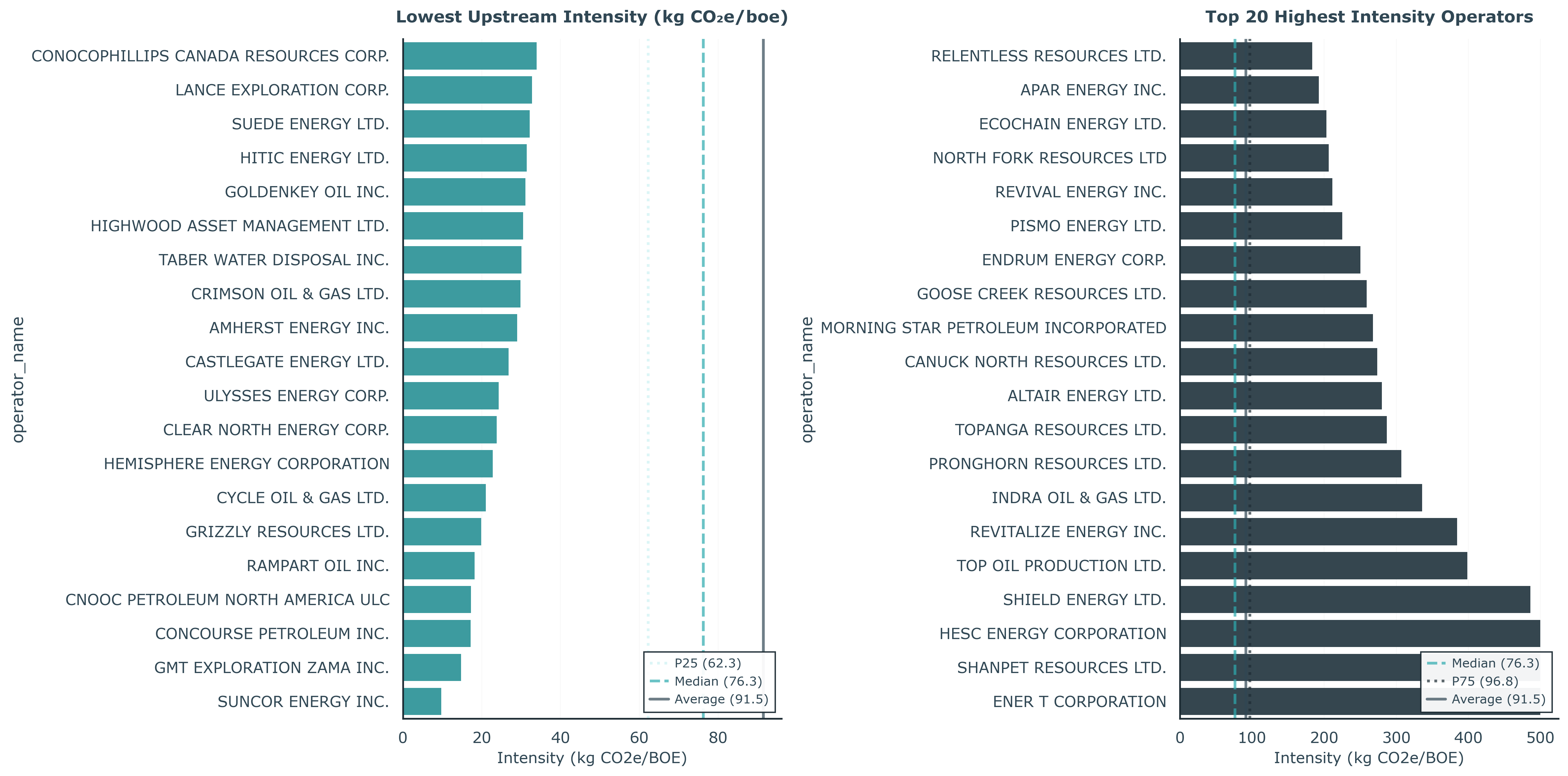 how: operator level emissions and economics model on Petrinex 2023, BOE normalized intensities, Hamilton DAG pipeline designed to extend to GHGRP and NPRI
